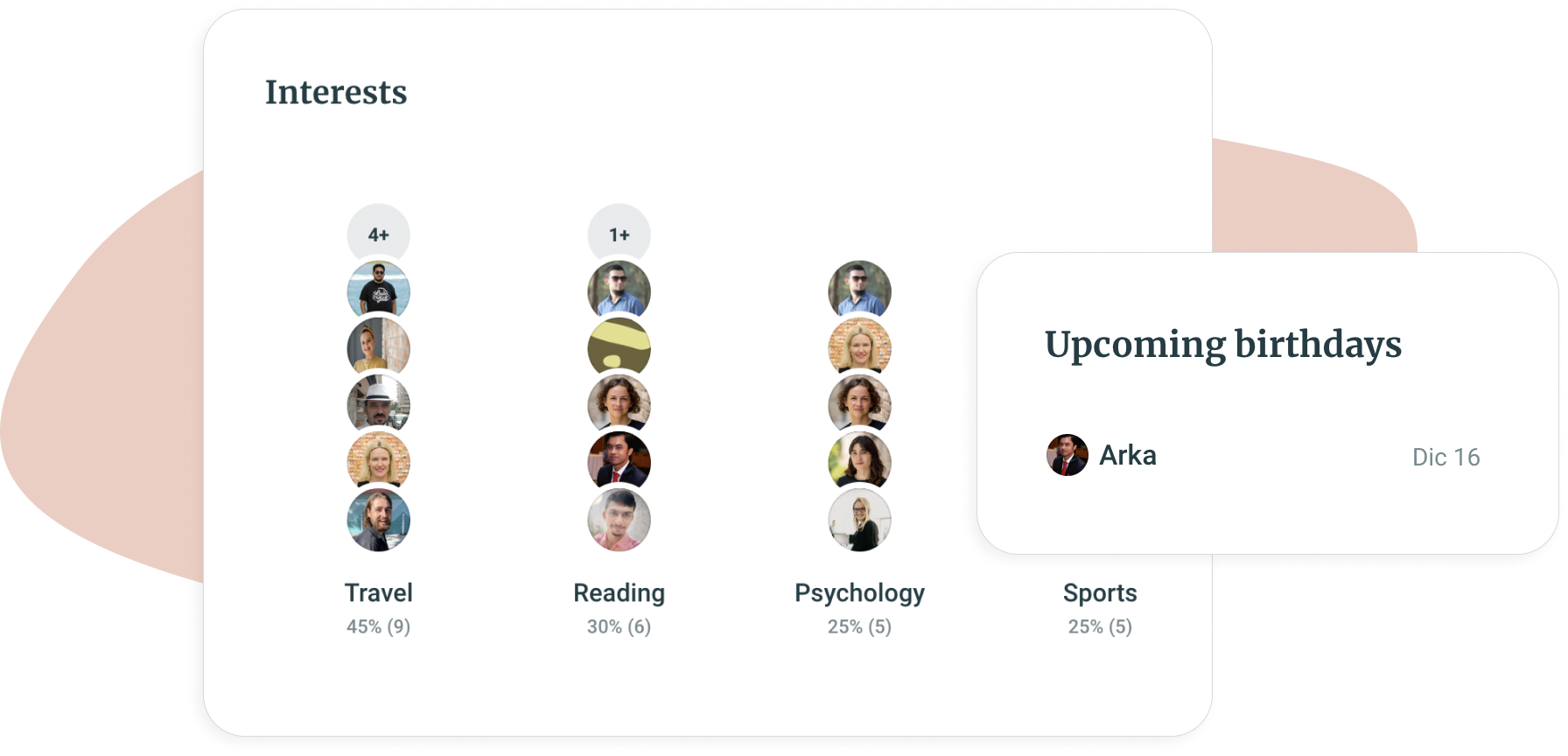 Designed to understand differences. Discover different interests and celebrate milestones such as upcoming birthdays, national holidays and workaverseries.